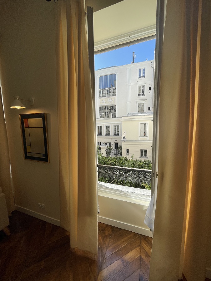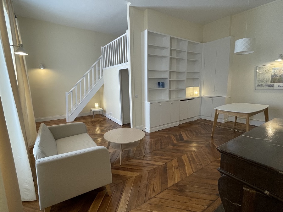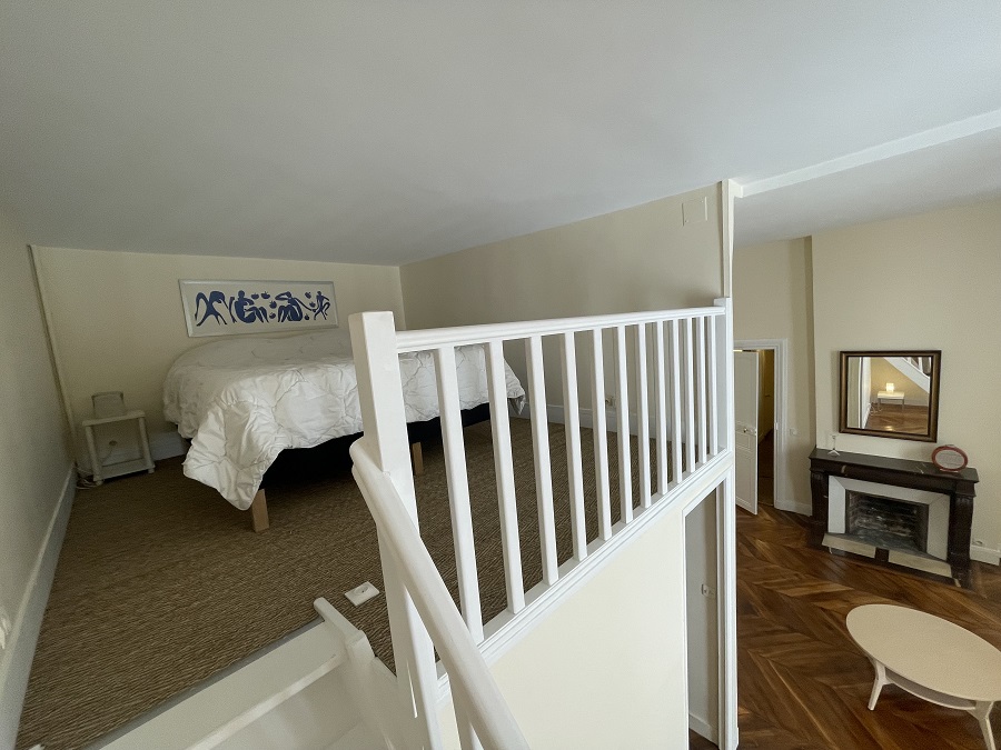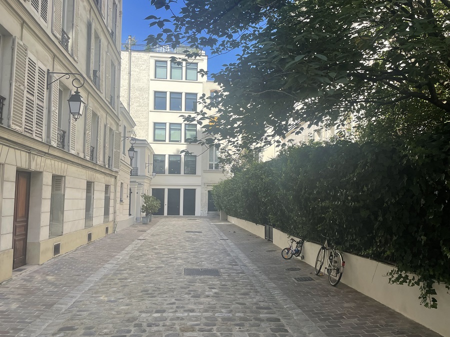 Location Meublée, Paris 9ème, Cité Pigalle, au métro Saint-Georges (ligne 12) ,au fond d'une ravissante impasse privée (digicode) fleurie et arborée, un appartement de trois pièces ayant été (probablement) habité par Vincent ou son frère Théo Van Gogh. Situé au 2ème étage avec ascenseur d'un immeuble du19ème siècle, en très bon état, comprenant une entrée, deux chambres (dont une de passage), un séjour, une vaste mezzanine avec lit double, une cuisine bien équipée (lave-linge, lave-vaisselle), une salle de bains et des WC séparés. Mobilier et décoration modernes en bon état. Parquet au sol. Chauffage collectif inclus dans le loyer. Au calme et lumineux (exposition Sud).